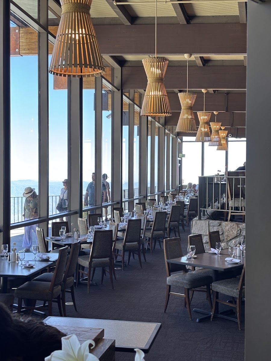 I booked a reservation here for my hubby's birthday and it was spectacular! Taking the tramway was the only scary part (for me personally), but it was a quick 10 minutes up the mountain. Once we reached the top, we took several pictures and noticed that they had a gift shop. We were seated right away, and had a great view. We both ate to our heart's delight and shared a dessert. The staff was so sweet and wrote "Happy Birthday" on the plate. The ambiance felt very royal and elegant. It was everything I had hoped for and more! Highly recommend!