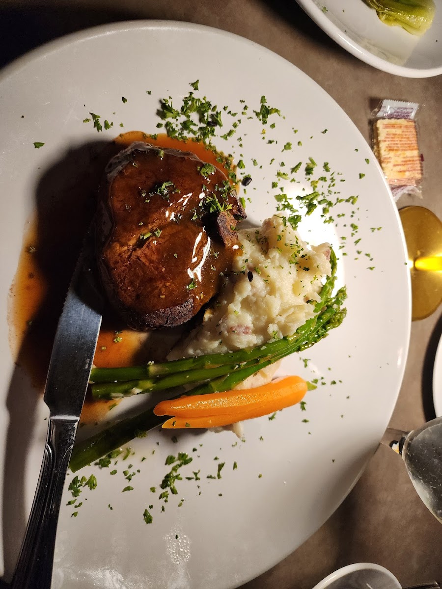 My boyfriend and I planned to go to Palm Springs for my birthday. I mentioned each time we went to Palm Spring that I wanted to go on the tram. He surprised me with reservations at this beautiful restaurant at the top called Peaks. Our reservation was at 7pm and we arrived at 4:15. We roamed around for a bit and kept ourselves busy until then. We were seated and had a beautiful view of Palm Springs which was breathtaking. We all had water to drink since we were higher up than normal. My boyfriend got a Diet Pepsi because he was a little tired but it did the trick. We were all starving so we were looking forward to this meal. My boyfriend and I both got the filet mignon with mash potatoes and carrots. My two friends split the lamb which the kitchen put on two different plates for them. The food was SO good and we cleaned our plates. My friends were still hungry so they split the meatloaf which also looked very good. Since it was my actual birthday, the restaurant treated me to a couple scoops of vanilla ice cream which I shared with the table. It tasted so good and it was such a beautiful experience!
